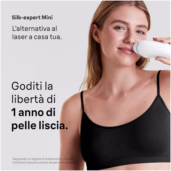 Con Braun Silk·expert Mini, puoi godere della libertà di 1 anno di pelle liscia¹. Pratico e personale, lo puoi utilizzare comodamente a casa tua.