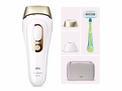 Silk·expert Pro 5 è il nostro epilatore a luce pulsata più veloce e potente che ti aiuta a ottenere risultati professionali, con una riduzione del 94% dei peli anche dopo 2 anni.¹