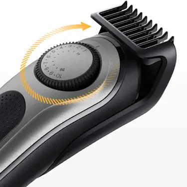 Ottieni uno stile perfetto con il set di accessori professionali, per rifinire, radere, sfumare o curare i dettagli.